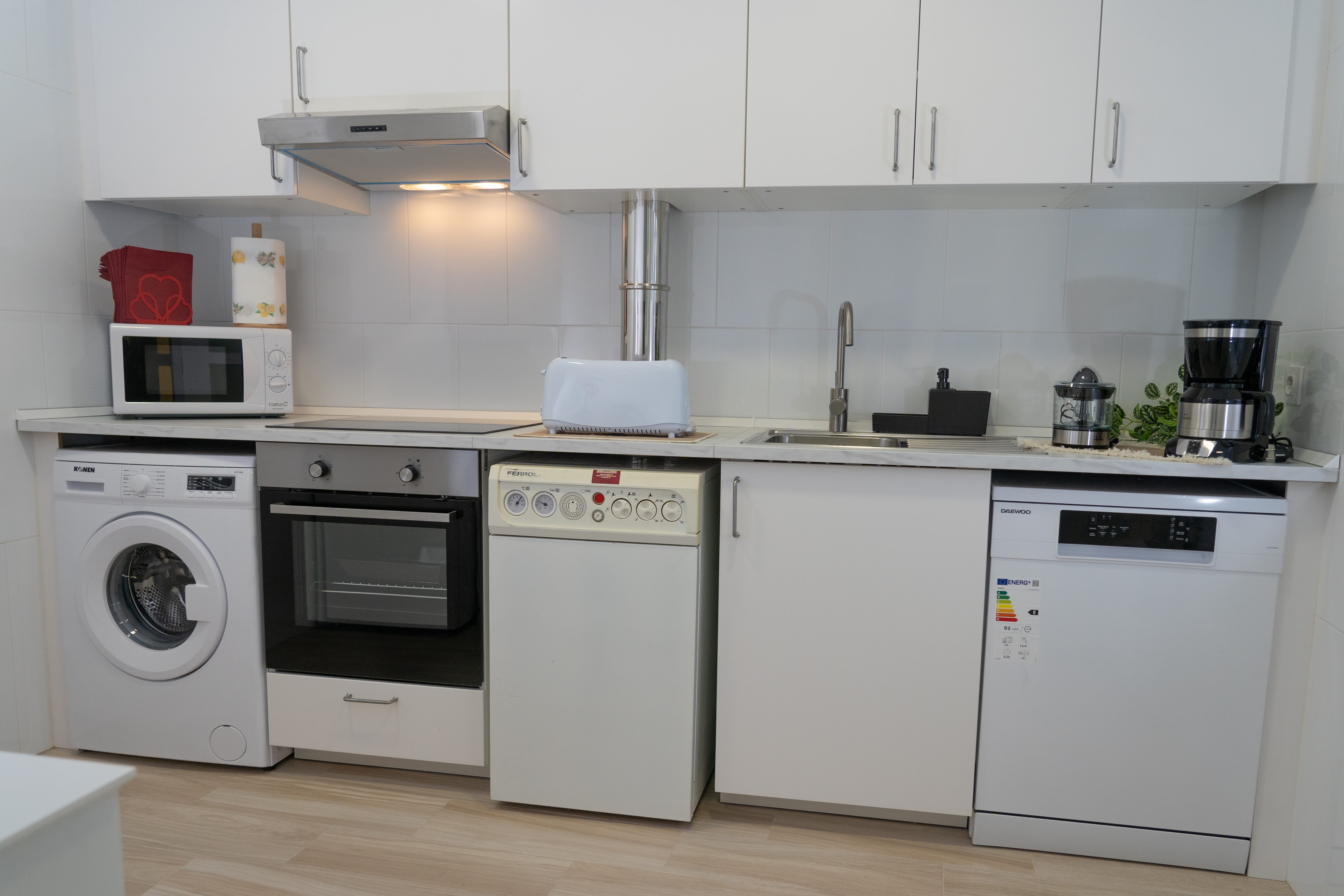 - Electrodoméstico (Sandwuchera, horno, microondas, frigorífico, cafetera, cocina, vitrocerámica, exprimidor, lavadora, lavavajillas, plancha, secadora, menaje de cocina).